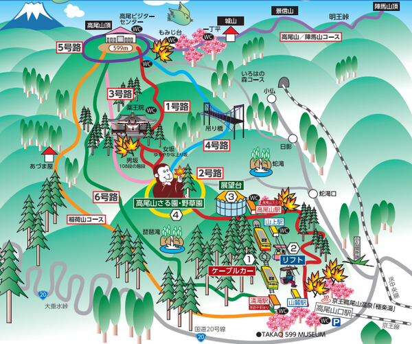 高尾山は電車でのアクセスも良く、駅からすぐに登山道という便利さとケーブルカーやリフトなど徒歩登山以外にも手軽に山頂付近まで運んでもらえるレジャー化された山なんですね。駅は高尾山口になります。